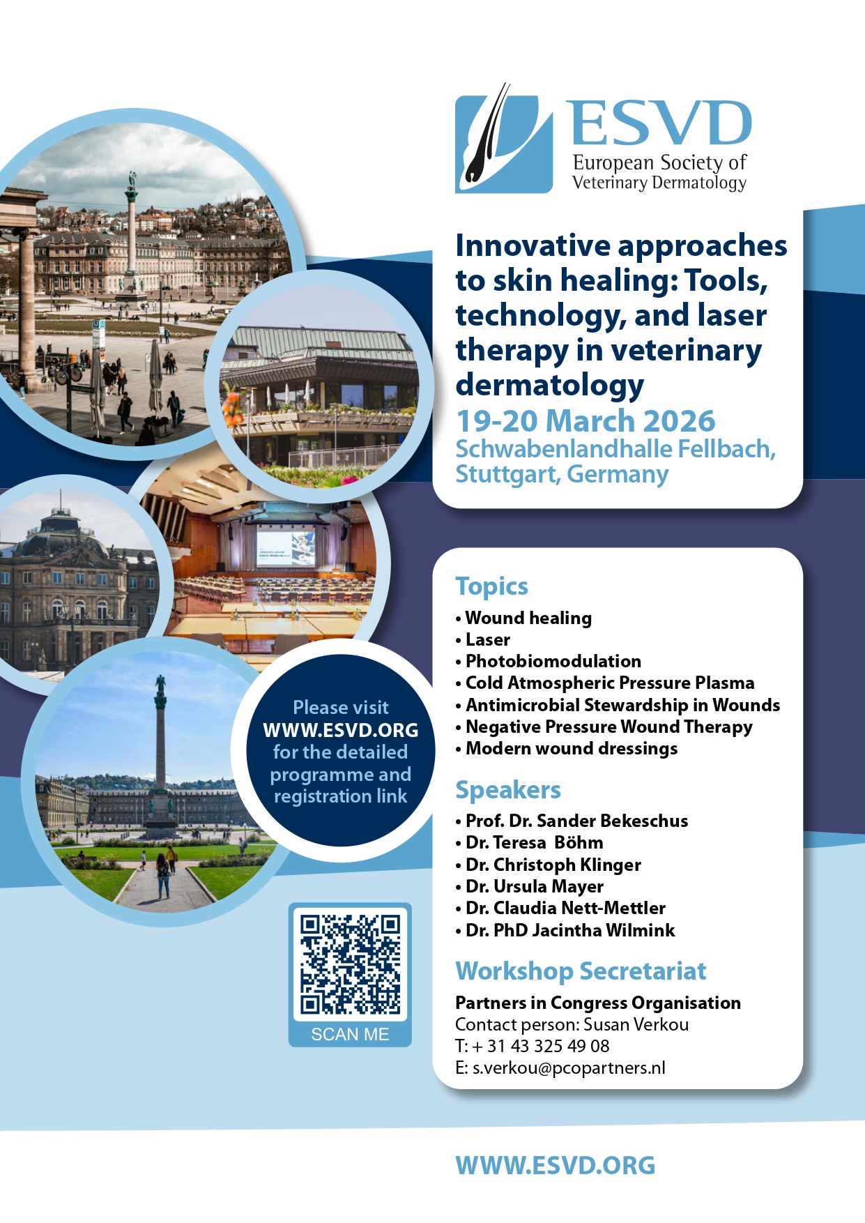 ESVD-ECVD 36th European Veterinary Dermatology Congress von 27.- 29.August 2026 in Lille, Frankreich